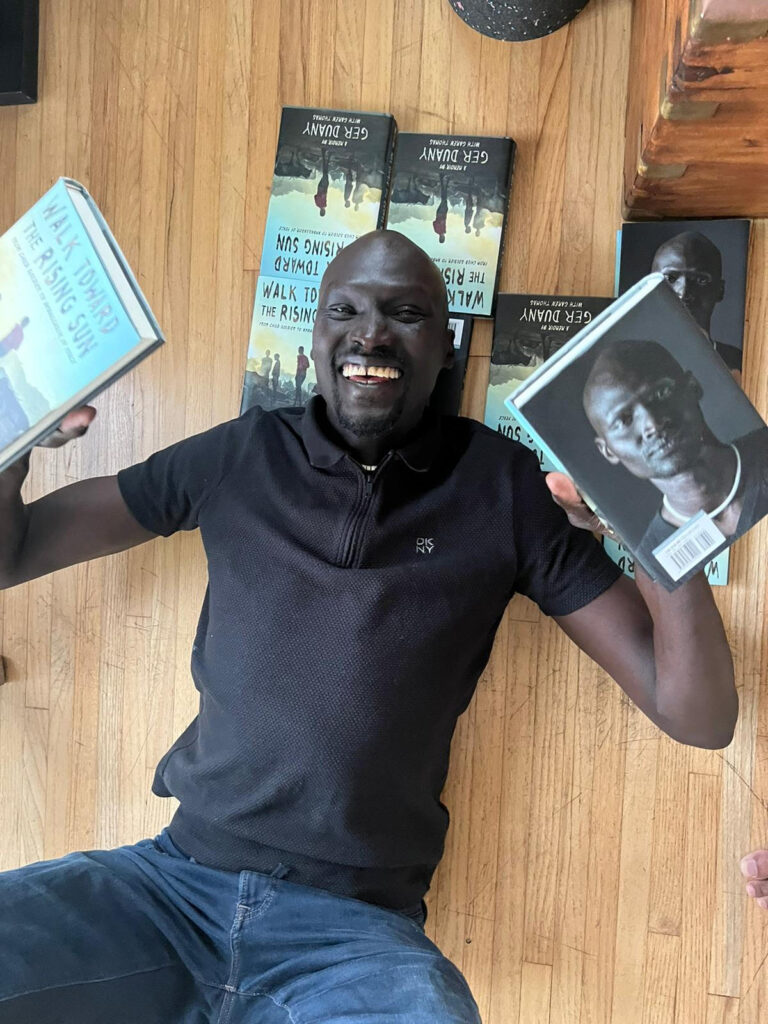 Ger’s father is a general in the SPLA fighting Sudan’s second civil war. Ger wants to fight too, but he sees the toll the war has taken on his mother. His mom quizzes him on what to do in case of an attack/ should he ever find himself alone. He answers he will walk toward the rising sun until he reaches safety.